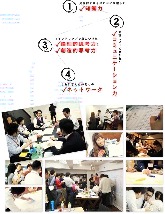 また、事前にTony Buzan公認のマインドマップ・プラクティショナー資格取得コースを受講し、マインドマップの基礎を理解した状態でご受講いただくと、よりスムーズに取り組める内容になっております。