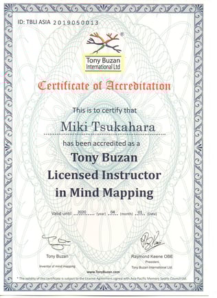 コースの修了者はTBLI (Tony Buzan Licensed Instructor in Mind Mapping) として、正式にマインドマップを教えることが許されます。